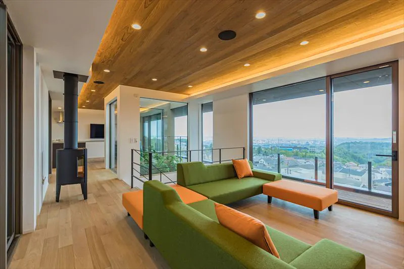 SE構法は、フレーム構造で荷重バランスを調整しやすく、景色を楽しむ大開口を設けながらも耐震性を確保しやすいというメリットがあります。高低差のある敷地や、外へ向かって開きたい土地ほど、「どこまで抜けをつくれるか」が空間の質に直結するため、この構法の価値が感じやすくなります。